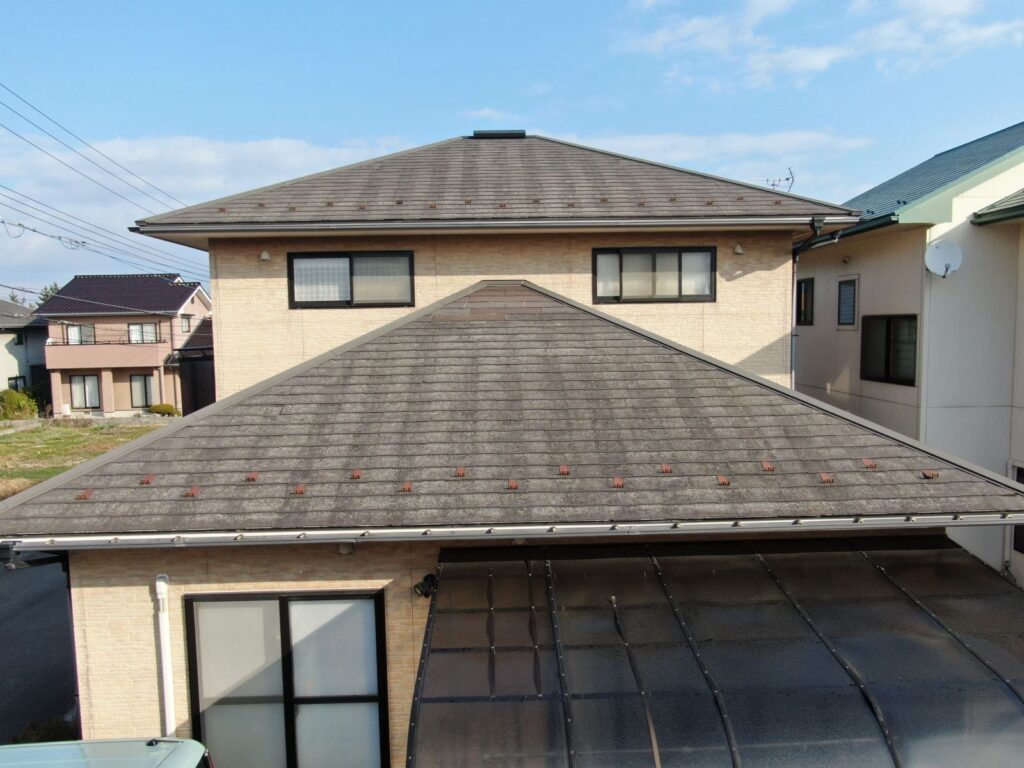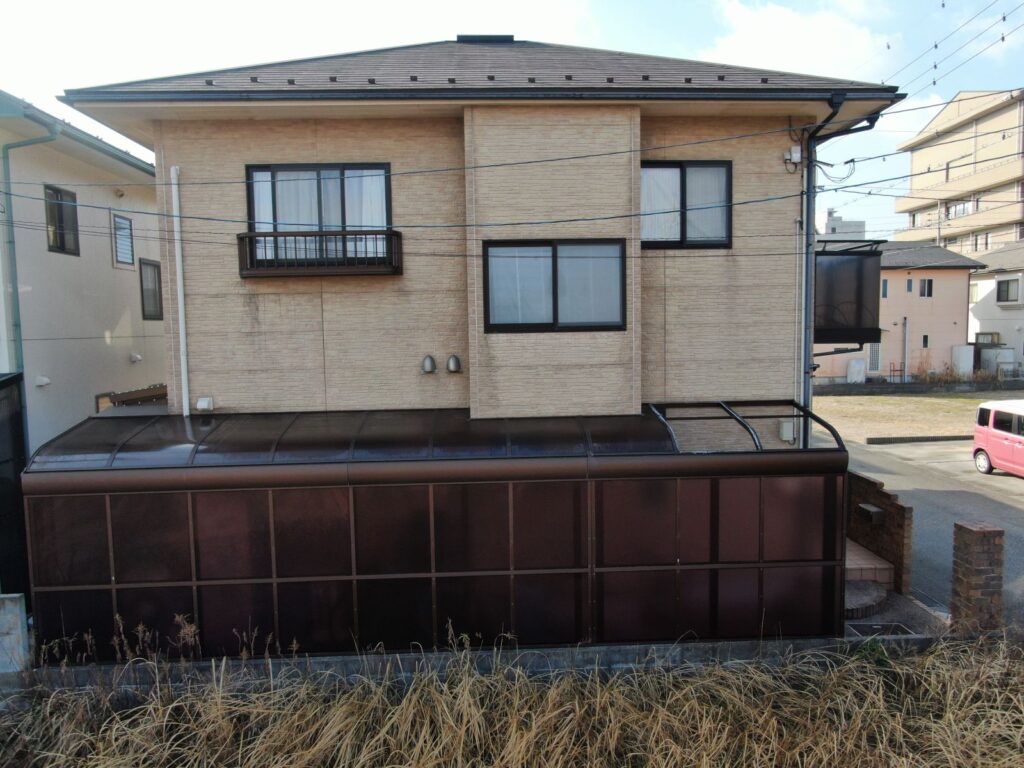 外壁には汚れや黒ずみ、色褪せが見られ、さらにスレート屋根の劣化も進んでいる状態で、『住まい全体が古びて見えるのが気になる』とのご相談をいただきました。