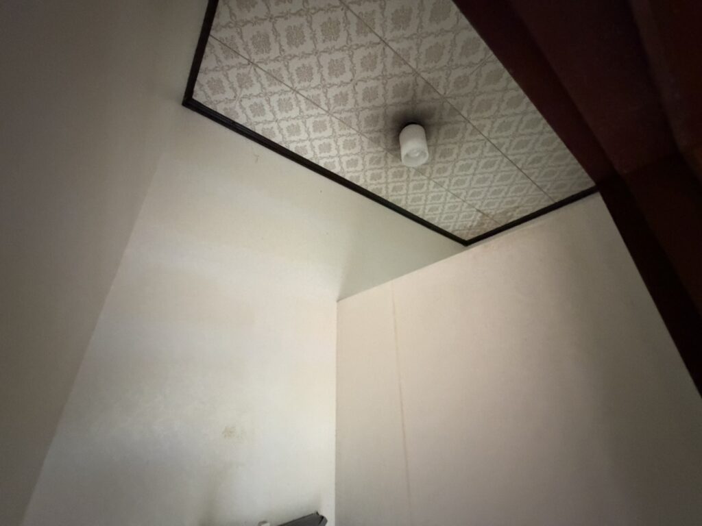 • 経年劣化により壁の汚れや天井にシミが発生しており、明るさに欠ける印象です。