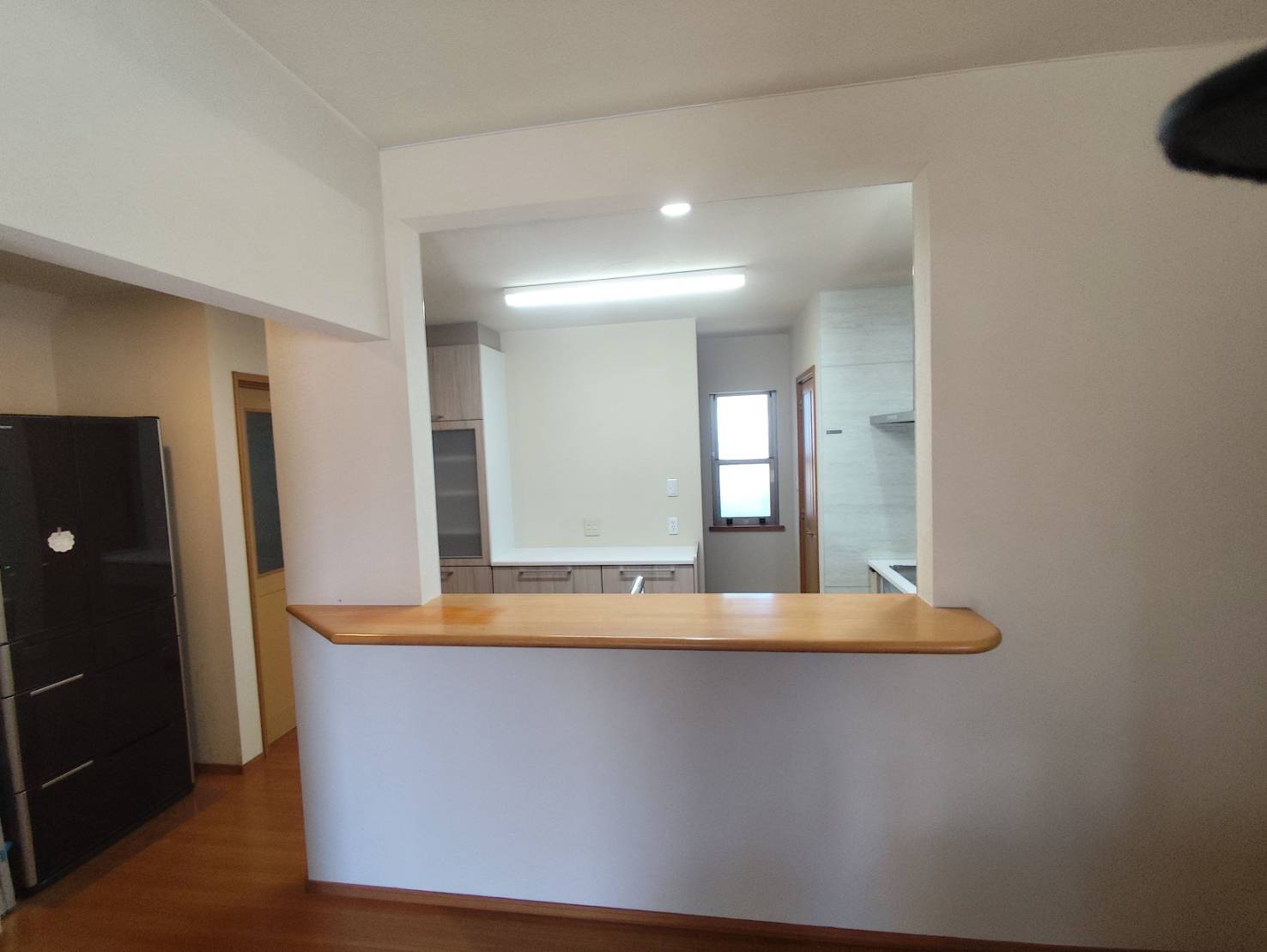 吊戸棚を撤去したことで視界が開け、ダイニング側からもすっきりとした印象のキッチンになりました。