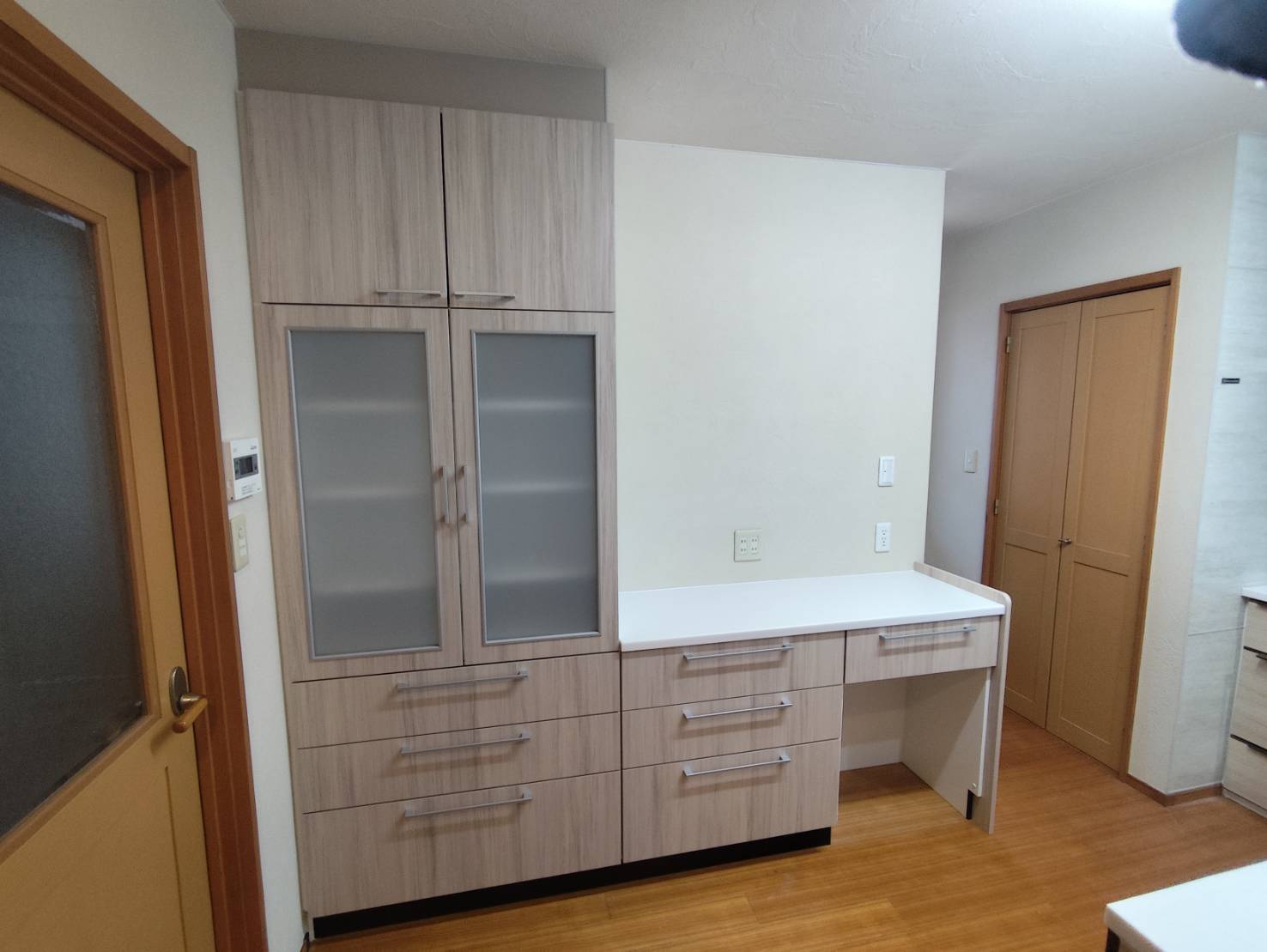 既存のカップボードは壁一面に収納が設けられていましたが、使い勝手や動線の面で改善の余地がありました。